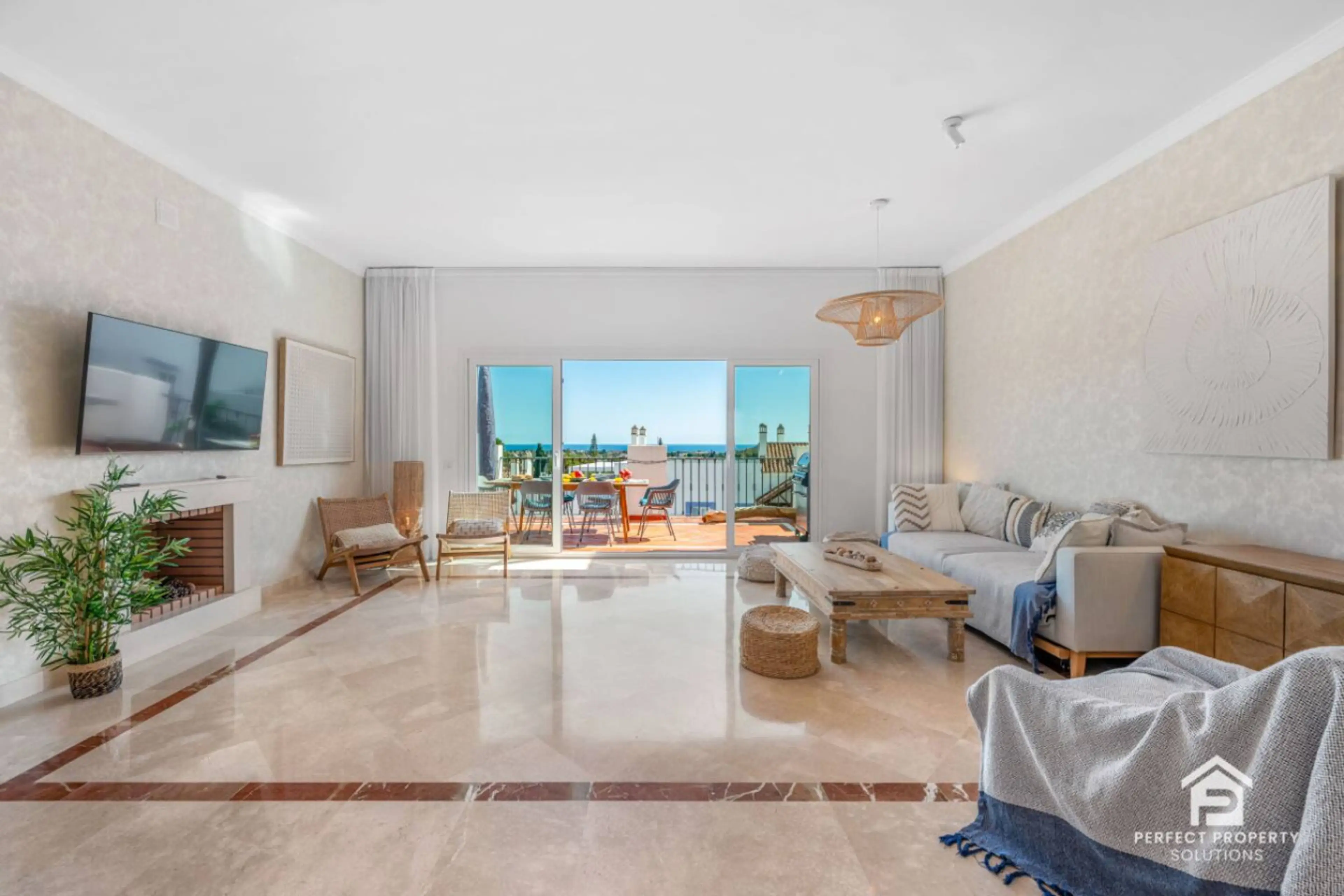 Set within the sought-after Paraiso Pueblo, this bright 2-bedroom apartment pairs relaxed interiors with standout outdoor living: a large sea-view terrace, panoramic rooftop jacuzzi, and garage parking. Ideal for long sunny days, BBQ dinners, and sunset drinks, it’s a stylish base in one of the coas...